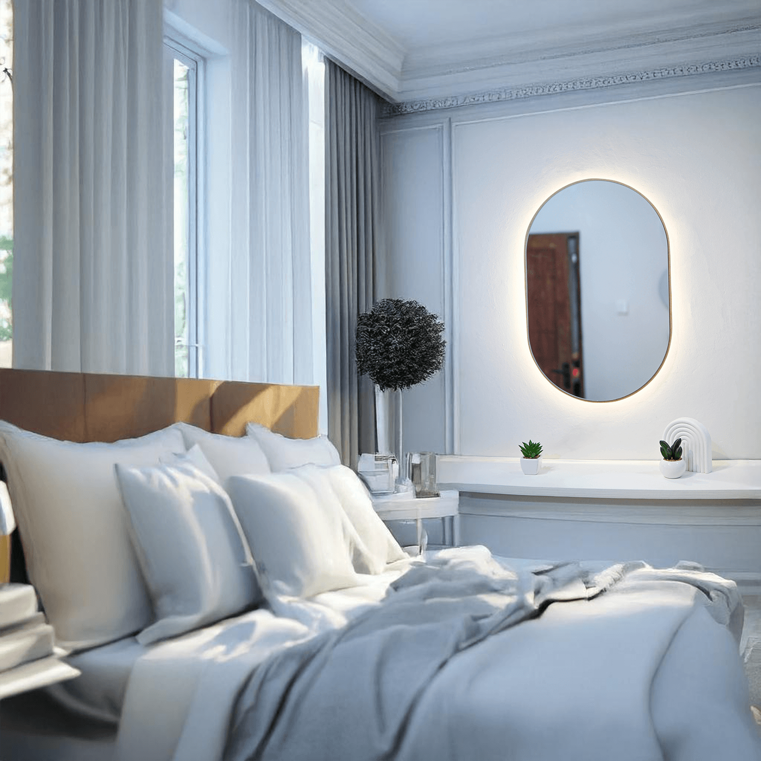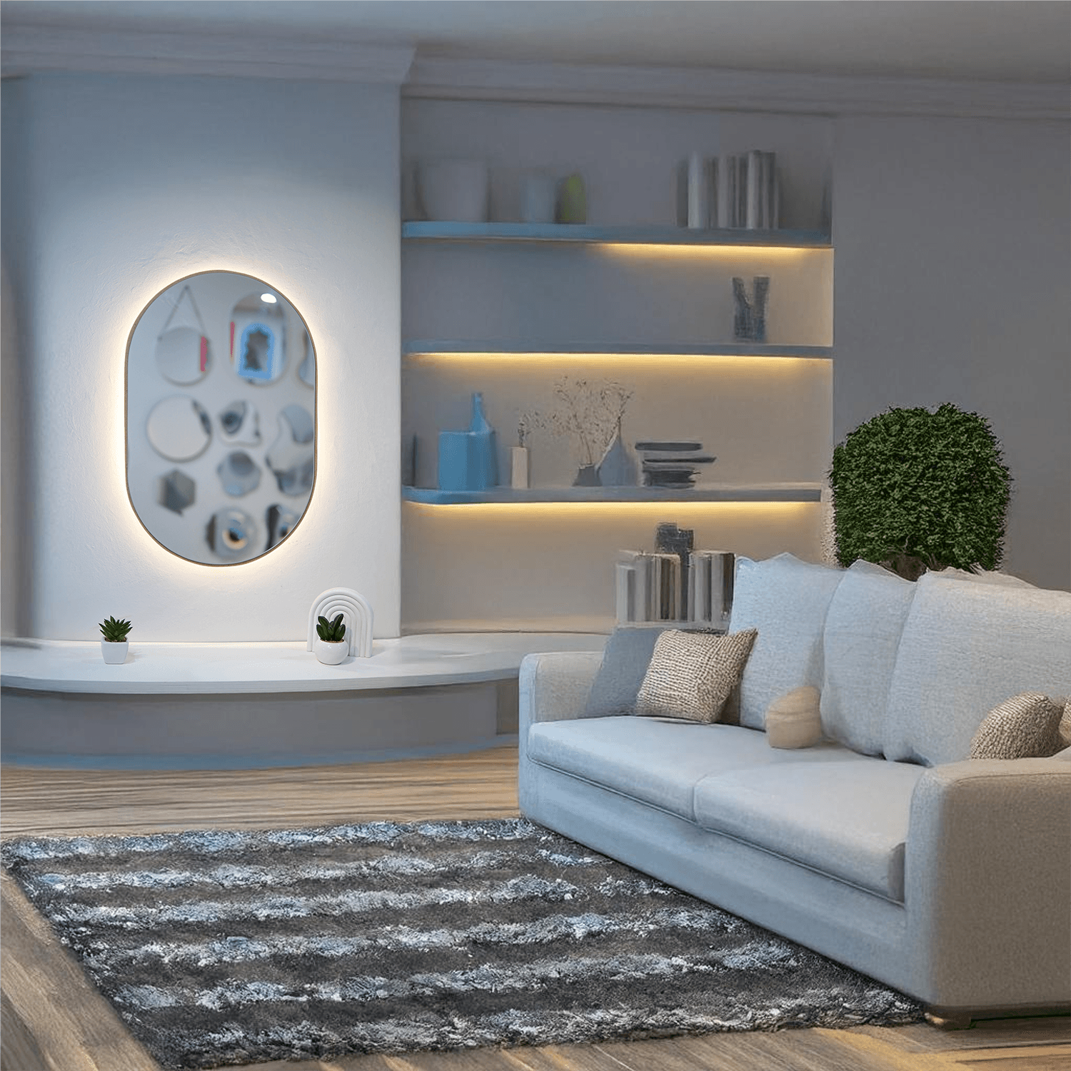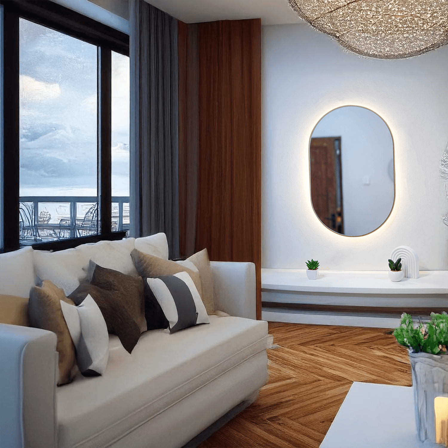 Cermin LED List Kayu – Kapsul